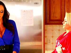 Deux lesbiennes avec de gros seins ont des rapports sexuels passionnés. La lesbienne chaude et plantureuse Joslyn James a initié son amie rousse Kelly en bas pour embrasser et lécher la chatte rose mouillée de l'autre et se donner des orgasmes